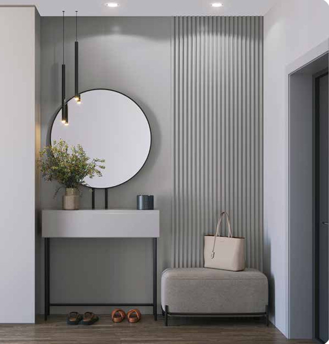 Ez a Vilo MPC rendszer lelke ! A Téliszürke M lamellás panelt más termékekkel való kreatív kombinációkra tervezték. Legkiemelkedőbb partnere a sima Vilo MPC Téliszürke XL panel . Az M lamellákkal ritmikus, háromdimenziós zónát hozhat létre, a fal többi részét pedig tökéletesen illeszkedő sima XL panellel fejezheti be. Ez korlátlan tervezési lehetőségeket kínál, miközben megőrzi ugyanazt az egységes ipari hálós textúrát.